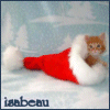Description: A kitten in a too-big santa hat