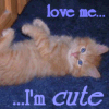 Description: A kitten on its back, totally in need of skritching. text: love me... I'm CUTE