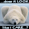 Description: A polar bear; text: ...does it look like I care...?